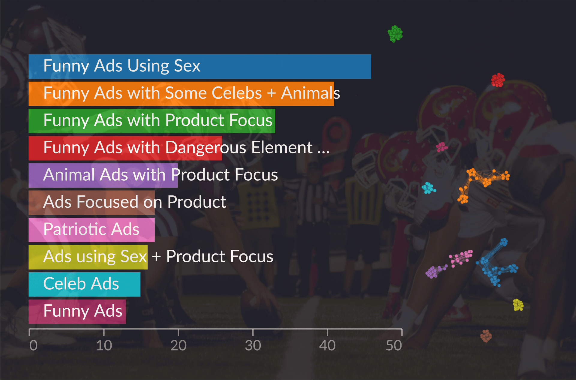 February 9, 2021Patriotism, Animals, Comedy and Sex: Clustering 233 Superbowl AdsAndy ClarkeVictoriano IzquierdoWe built a model clustering 233 Superbowl ads using data from FiveThirtyEight in order to work out what content brands use to sell their products during America's most-watched sporting event.