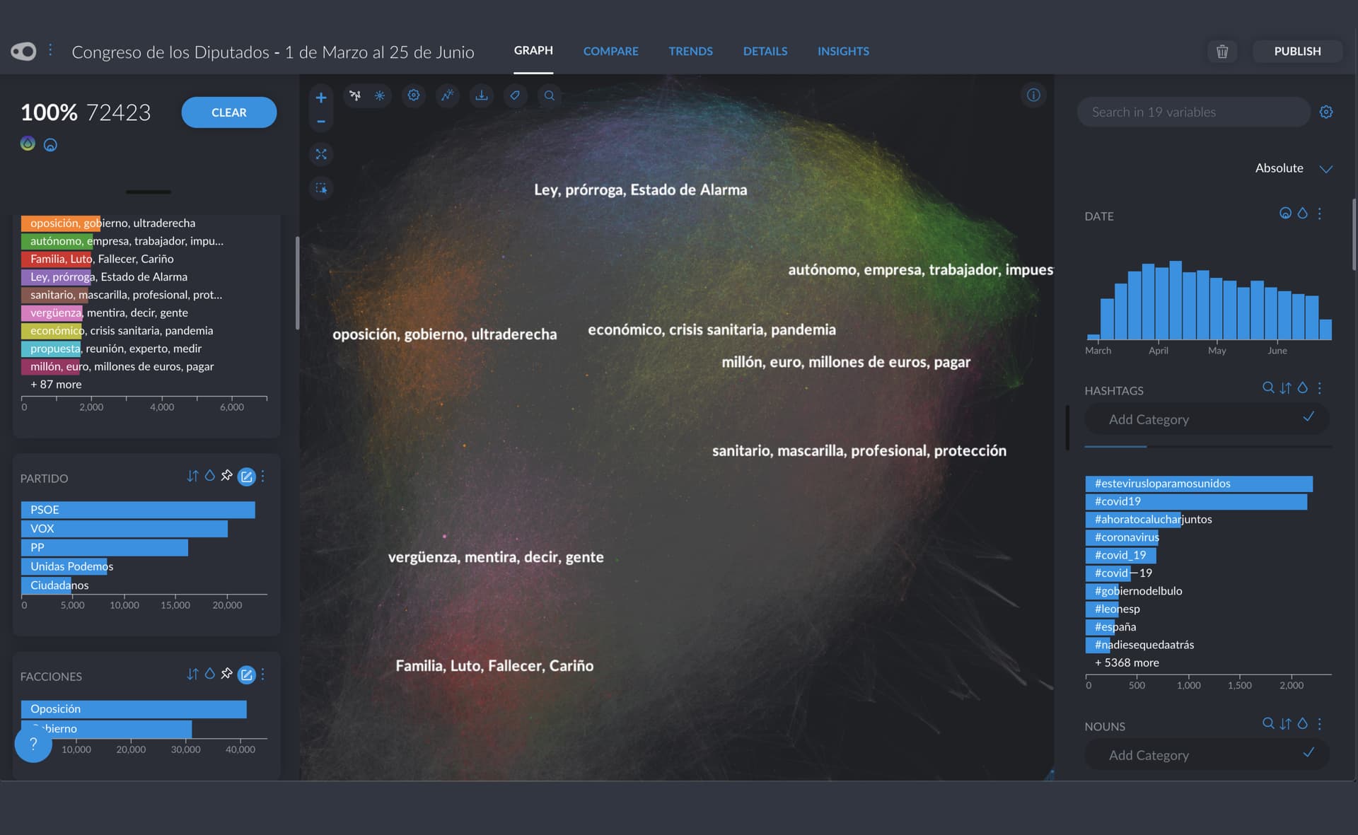 August 7, 2020Cómo el Congreso de los Diputados tuiteó durante el Estado de AlarmaVictoriano IzquierdoPrácticamente todos los diputados del Congreso actual, la XIV legislatura, tienen cuenta en Twitter y gran parte de su trabajo consiste en leer y escribir tweets. Para bien o para mal, los políticos nunca han tenido más poder y facilidad para mandar directamente sus mensajes a los ciudadnos sin el filtro de la prensa. Analizamos las principales narrativas que cada partido movió.