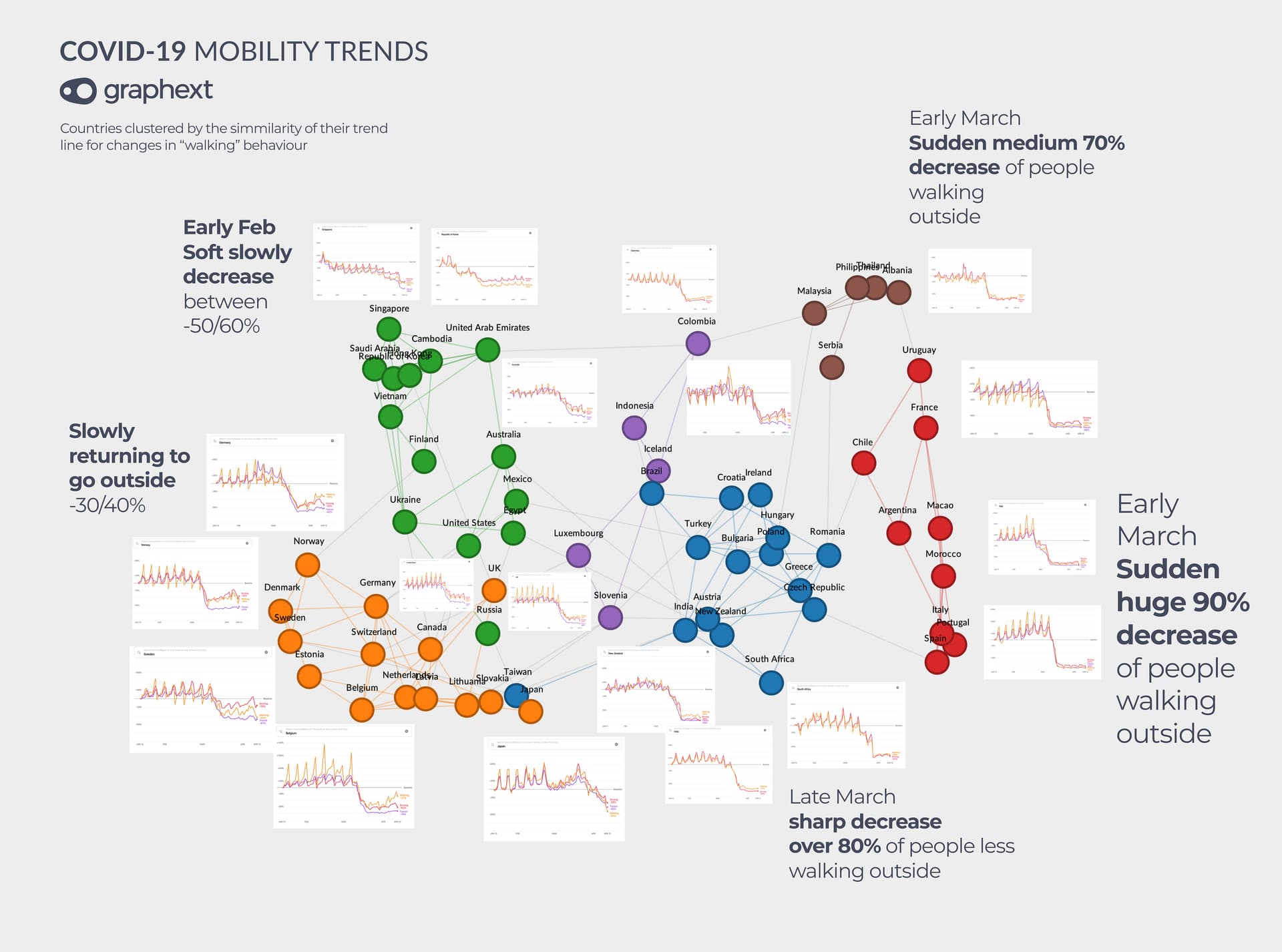 April 16, 2020Clustering countries by Covid-19 Mobility Trends changesVictoriano IzquierdoWe used the Apple Mobility Trends Report to cluster with Graphext countries that are experiencing similar changes in people's walking behaviour.