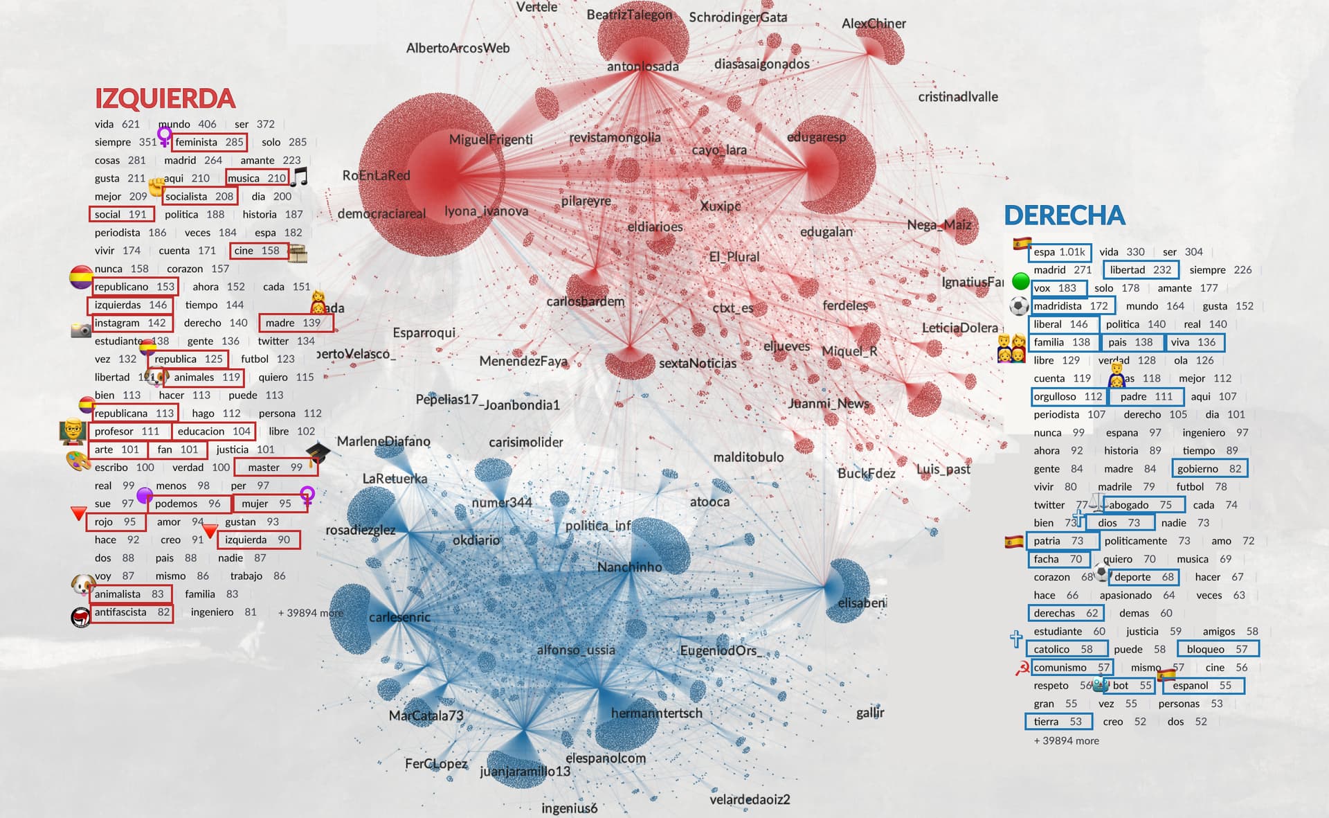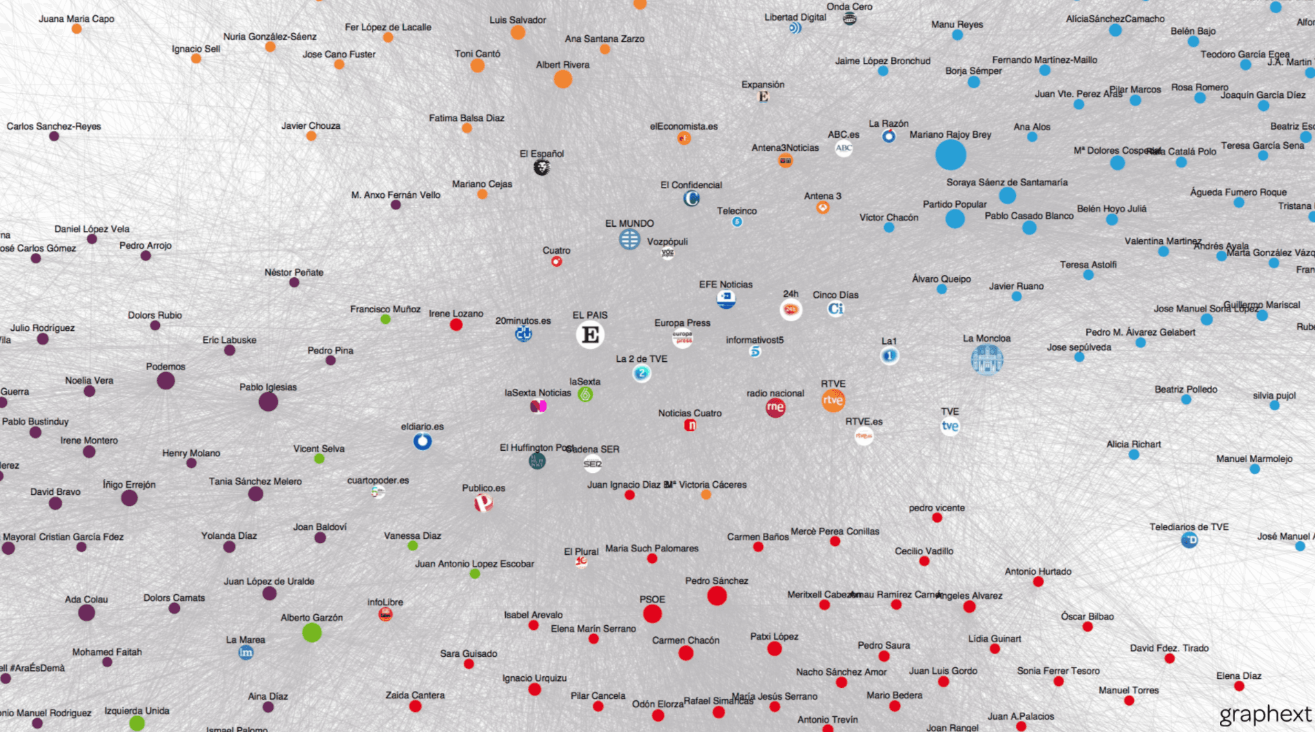 December 26, 20203 Mapas de Poder Político en EspañaVictoriano IzquierdoHoy publicamos en El País 3 grafos que representan 3 mapas de cómo están conectados en redes sociales los periodistas políticos, los diputados y las cuentas de Twitter políticas más relevantes en España.