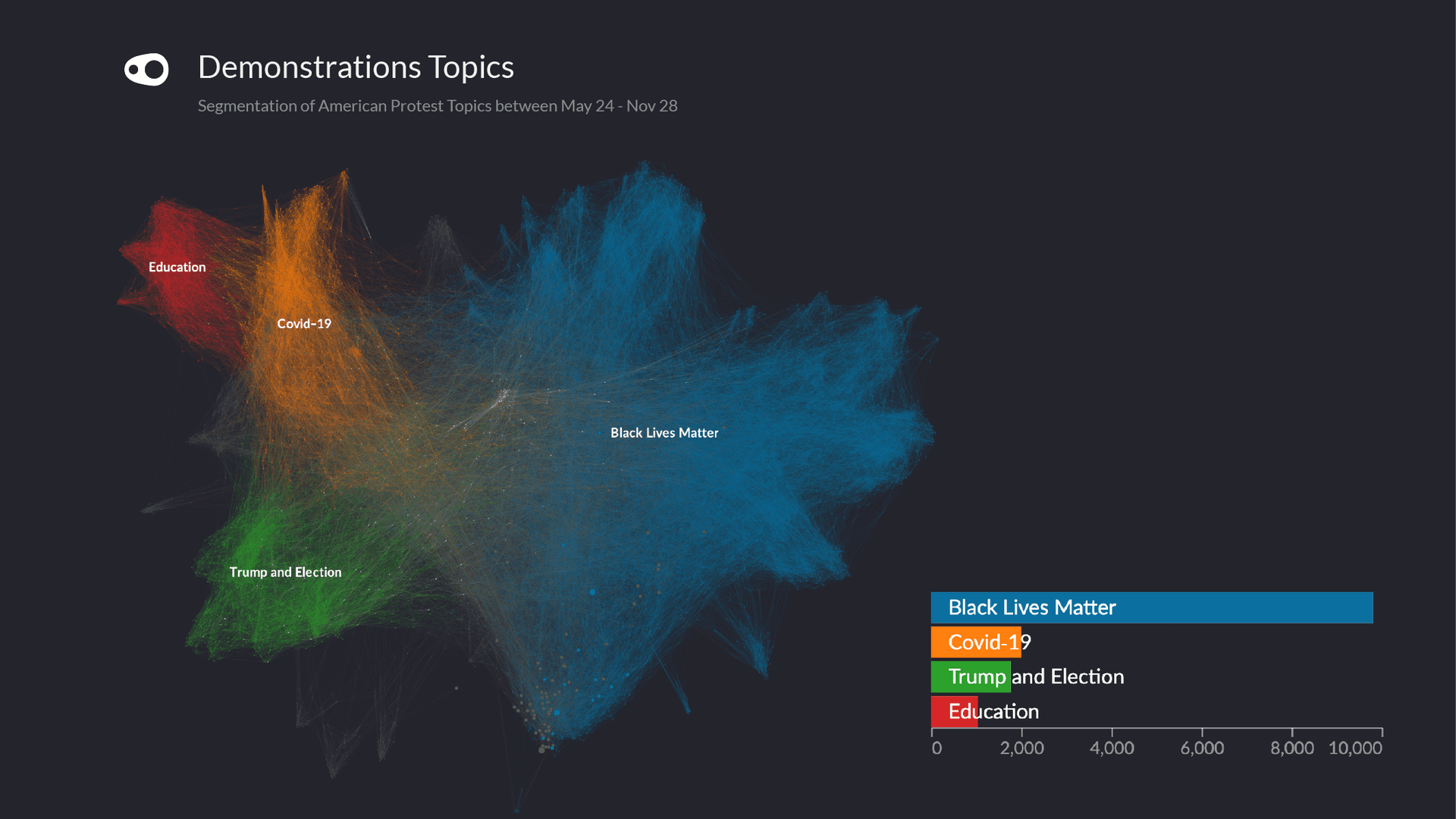 December 29, 2020The Evolution of American Protests After the Death of George Floyd: COVID-19, BLM and the ElectionAndy Clarke2020 has been a turbulent year for every country but particularly in the USA. We clustered American protest events between May 24 - Nov 28, 2020 to investigate the relationships between types of protests, their violence and their geography.